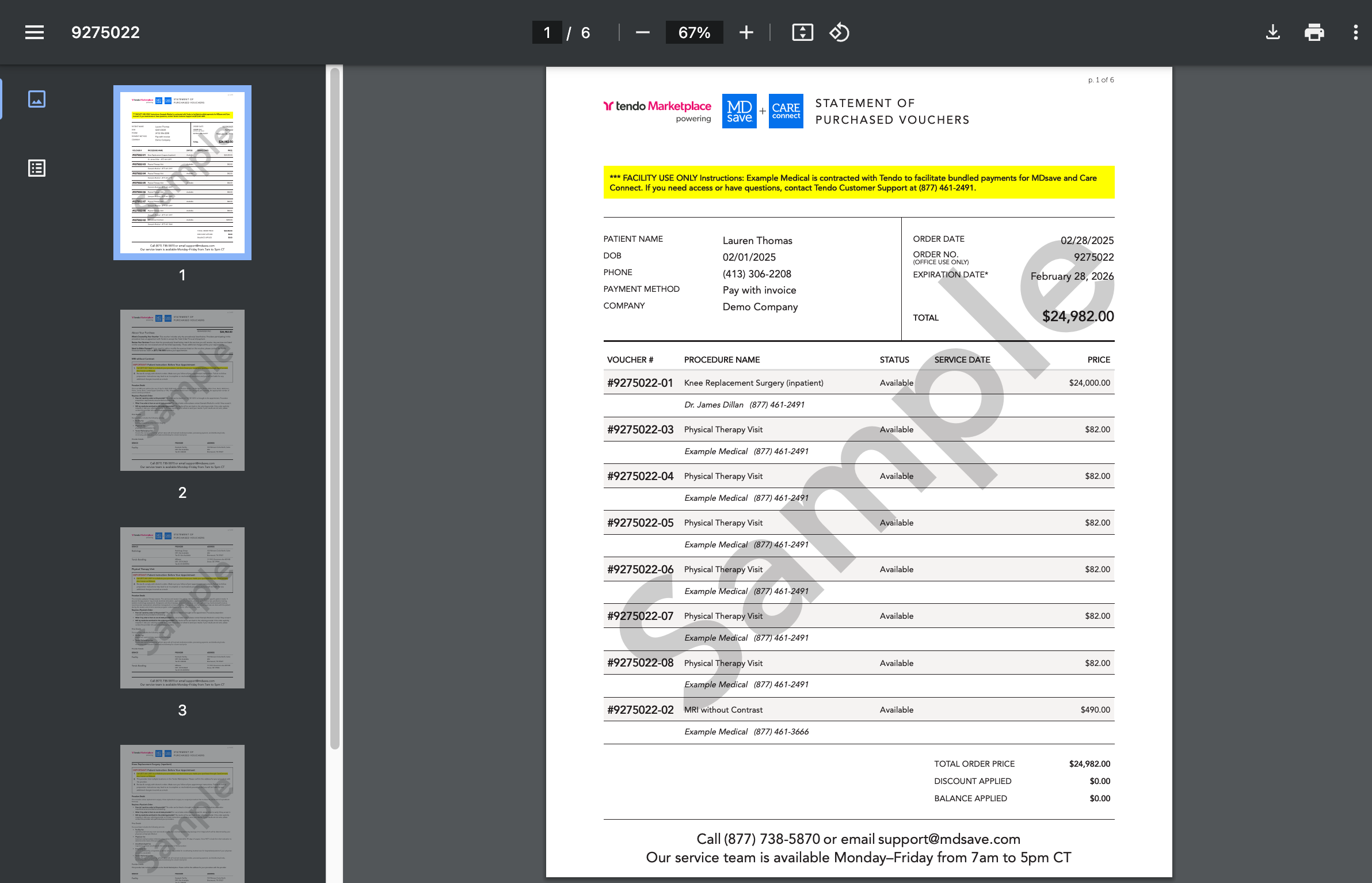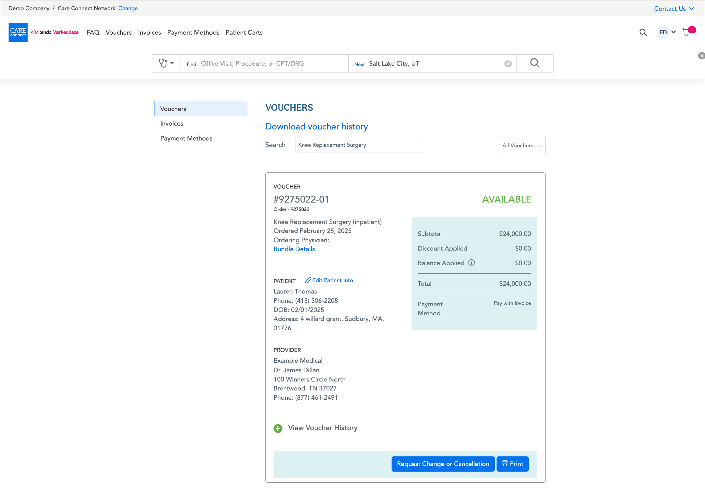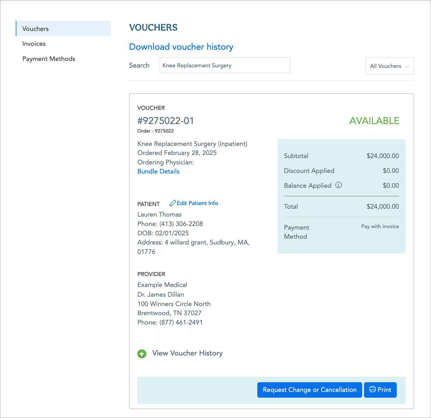 Tell patients that they should take a printed or digital copy of their voucher or provide their information and voucher number to the provider staff at their appointment. Once the procedure has been completed, the staff redeems it. This sets in motion the process of invoicing the company to pay for the procedure if it hasn't been prepaid by another payment method.