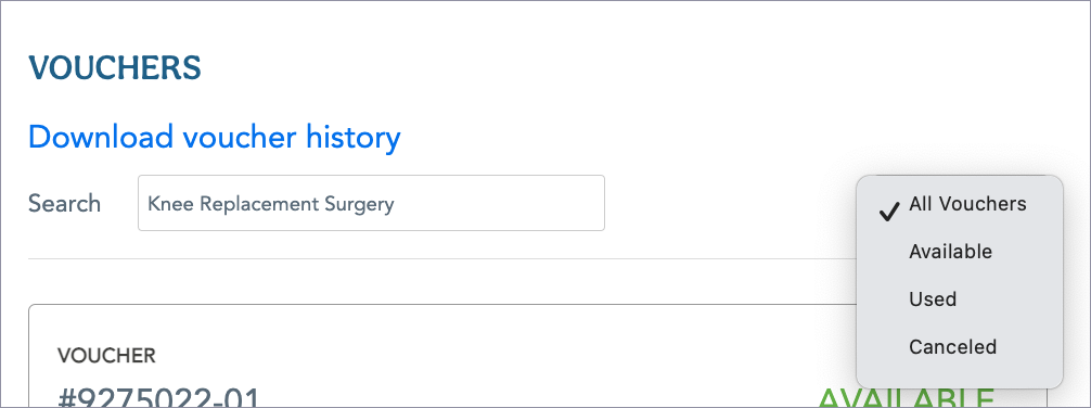 - Procedure that the voucher is for. Click on the name to learn more details.