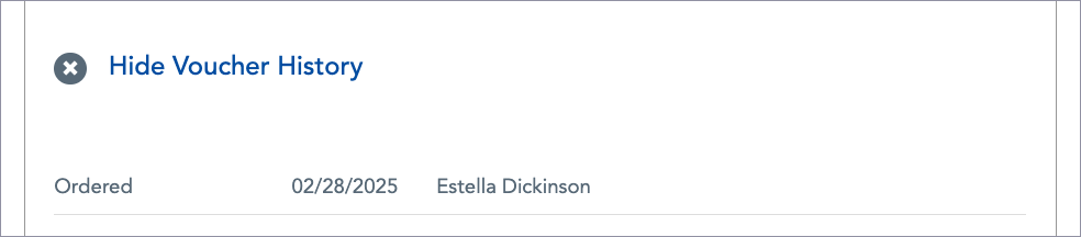 - View a single voucher’s history by clicking View Voucher History at the bottom. The page will expand to show the voucher history.