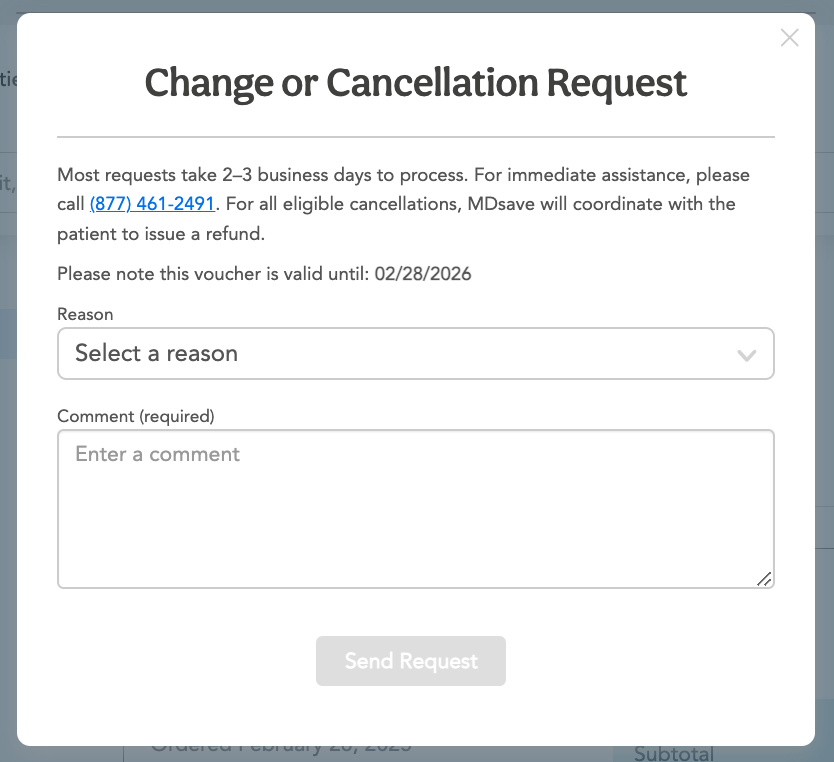 Select a Reason in the dropdown, and enter a comment explaining more about the change or cancellation.