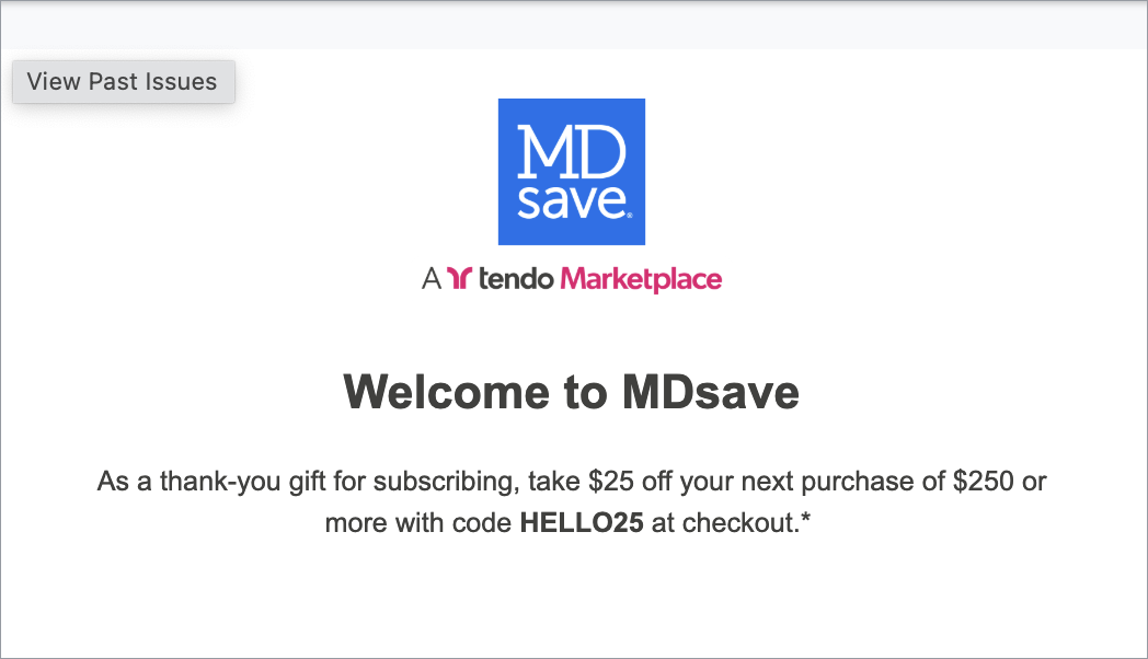 When patients sign up to receive a Tendo Marketplace newsletter, they can receive a $25 promotional code for a procedure that costs $250+.