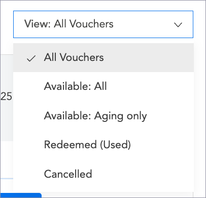 You also can filter vouchers for various types. Click View All Vouchers to select the type of vouchers you want to see.